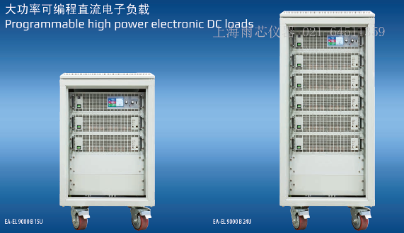 新系列電子負載EA-EL 9000 B 15U 與 EA-EL 9000B 24U,是EA-EL 9000 B系列大功率型號裝于可移動19“機柜組成的。因此會有20組不用的配置,形成不同的功率級別。一個機柜系統(tǒng)可被當(dāng)作一個擴大功率的單機負載,在具有EA-EL 9000 B系列標(biāo)準型號的基本特性外,也有手動操作與遠程控制。