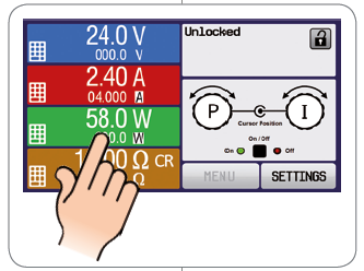 彩色TFT觸摸屏可以讓用戶直觀地進(jìn)行手動(dòng)操作,就像現(xiàn)在流行的智能手機(jī)或者平板電腦那樣操作。跟舊系列電子負(fù)載相比,經(jīng)模擬或數(shù)字接口控制產(chǎn)品時(shí)的響應(yīng)時(shí)間已大大提高,全歸因于ARM處理器控制的硬件。