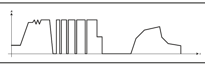 下圖是任意發(fā)生器可實現(xiàn)的由40個序列組成的復(fù)雜曲線,僅為虛構(gòu)范例??梢栽诋a(chǎn)品外或者于產(chǎn)品上 創(chuàng)建函數(shù),然后上載或保存: