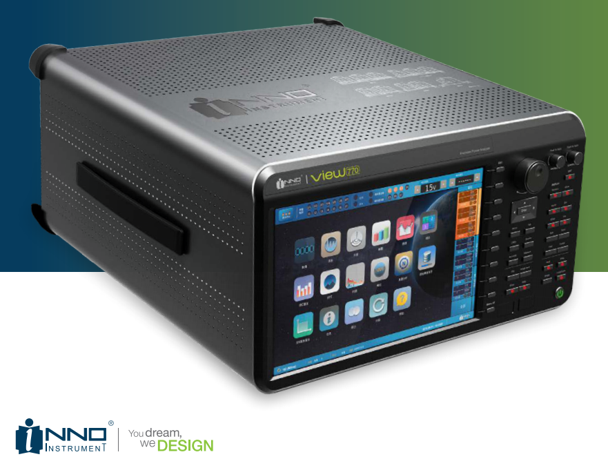VIEW770 高精度功率分析儀可用來測量變頻器、 電機、 變壓器等功率轉 換裝置的電壓、 電流、 功率、 效率等各種參量。 儀器最多提供7個功率輸 入單元, 2個電機輸入通道, 并且支持多種類型的功率模塊組合。 其測量量程、 精度的多樣性使其可以廣泛用于各行各業, 比如電動汽車、 新能 源、 變頻器、 電機、 電池、 照明、 家用電器以及航空電子行業等。 儀器 功能強大, 具備多通道輸入、 高速采樣, 實時數值顯示、 波形顯示、 趨 勢圖、 棒圖和矢量圖等多種顯示功能, 運用其諧波分析、 電機評價、 電 壓波動及閃變測量和FFT( 快速傅里葉變換 )等功能可對各種系統進行高 效測量和分析。